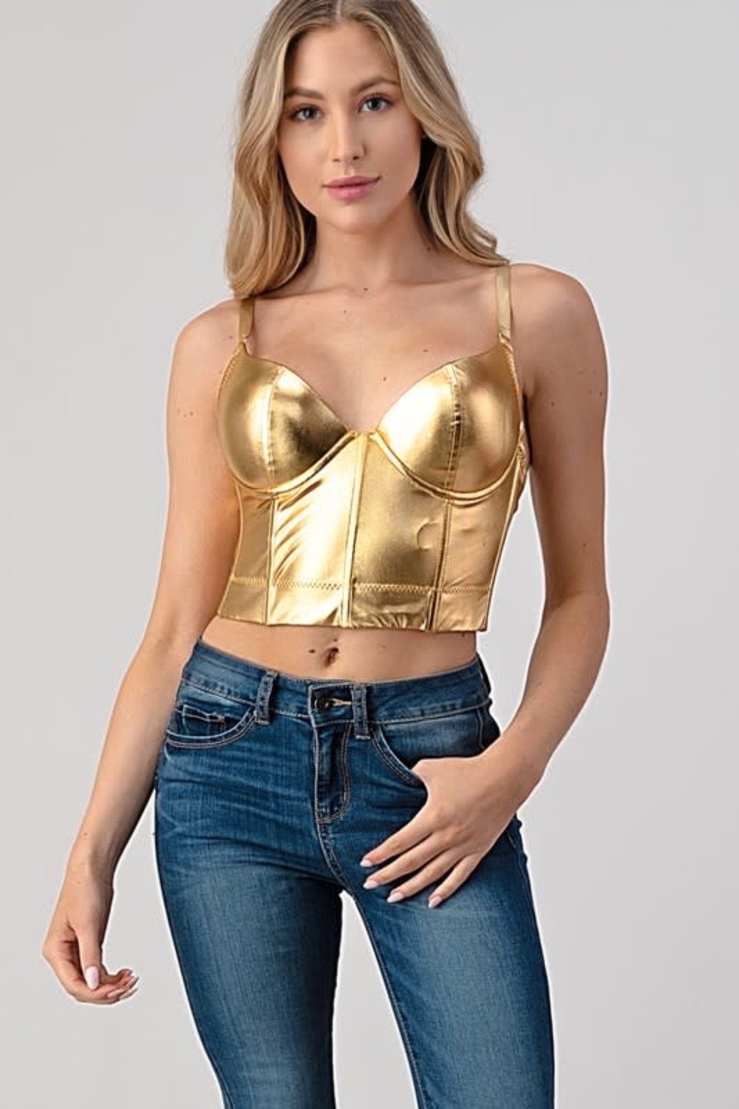 Gold Bustier Top / Ellacci Women Gold Chain Smooth Push Up Bustier Crop Top Corset Bra With Detachable Straps At Amazon Women S Clothing Store. 2021 popular related search, hot search, ranking keywords trends in women's clothing, camis, underwear & sleepwears, bustiers & corsets with gold bustier top and related search, hot search, ranking keywords. Topsworld 5 out of 5 stars (163. Tiny gold sequins glitter grandly, trimmed in beige piping along the top and bottom. Dolce and gabbana leopard top. 100s of new markdowns just added to sale.